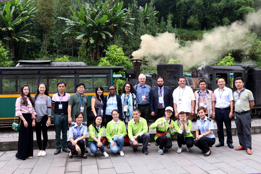 9月18日,第四屆四川國際旅游交易博覽會UNWTO(世界旅游組織)嘉賓代表來到景區(qū),感受工業(yè)革命別樣景致文化 ,乘坐絕版蒸汽老爺小火車,欣賞段家灣穿越花海、亮水沱噴汽表演景觀,看東方紅文藝表演,與老礦區(qū)居民合影,外國朋友興致濃厚,贊賞有加,留住精彩瞬間,向世界各地傳播友誼和旅游文化。