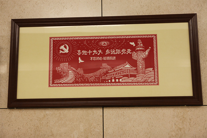 近日,一份特殊的“禮物”——由天彭電力員工莊叢燦自行構(gòu)思、精心創(chuàng)作的剪紙作品《獻(xiàn)禮十九大,永遠(yuǎn)跟黨走》掛在了錦江國(guó)際大廈6樓川投能源的醒目位置,表達(dá)了基層員工對(duì)黨的感恩之情和對(duì)十九大的美好祝愿。