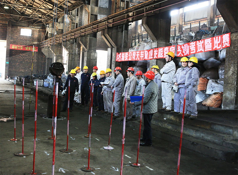 由于此次職業(yè)技能鑒定涉及的工種、級別、人數(shù)較多,時間緊任務(wù)重,川投峨鐵公司高度重視,12月8日由公司黨委副書記余華偉主持召開專題協(xié)調(diào)會,對人員組織、考場準(zhǔn)備、比賽現(xiàn)場安排等各個環(huán)節(jié)進(jìn)行了認(rèn)真梳理、統(tǒng)籌安排,確保鑒定考試順利進(jìn)行。按照分工安排,公司天車比賽裁判組在設(shè)備保障中心大力協(xié)助下,考試比賽前期對場地、工器具以及工件等做好各項(xiàng)準(zhǔn)備,并為天車實(shí)際操作訓(xùn)練提供設(shè)備保障、為電工初中級實(shí)際操作提供技術(shù)輔導(dǎo),通過手把手指導(dǎo),確保每名參考人員掌握實(shí)際操作要領(lǐng)。各參賽單位和參考人員也積極參與到培訓(xùn)、實(shí)操練習(xí)和考試等準(zhǔn)備工作中。備考期間,每天都有參賽單位天車工主動利用工余和周末休息時間到比賽場地進(jìn)行練習(xí),力爭取得好成績。 12月10日上午8:30時,電、鉗、起重工職業(yè)技能鑒定及起重工技能比賽在公司食堂二樓、鎢鐵爐成品跨、制桶車間、設(shè)備保障中心會議室等4個場地同步進(jìn)行。電、鉗、起重工理論考試按照高、中、初三個級別分兩場七個班次進(jìn)行??荚嚤荣惽?,峨鐵節(jié)能材料副總工程師歐鷹作現(xiàn)場講話,希望參加考試競賽人員以此次職業(yè)技能鑒定和比賽為契機(jī),端正態(tài)度,以考促學(xué),努力提高崗位技術(shù)專業(yè)技能,不辜負(fù)公司的希望和大家所付出的努力。