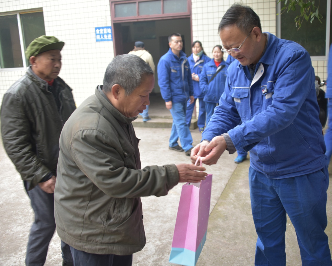 上午10點(diǎn),川南發(fā)電愛(ài)心團(tuán)隊(duì)抵達(dá)江北鎮(zhèn)敬老院,敬老院羅院長(zhǎng)首先向大家介紹了敬老院的人員構(gòu)成、日常生活等情況。川南發(fā)電黨委副書(shū)記黃松代表黨委書(shū)記李勝章向各位老人表示親切問(wèn)候和誠(chéng)摯的祝福,祝老人們身體健康、晚年開(kāi)心愉快。黃副書(shū)記與愛(ài)心團(tuán)隊(duì)成員們一道,將為老人們準(zhǔn)備的慰問(wèn)品一一遞到他們手中;隨后,大家參觀了敬老院,在院壩中、房間里與老人們聊天交談,送上親切的問(wèn)候和祝福。面對(duì)川南發(fā)電的愛(ài)心關(guān)心,老人們臉上洋溢著欣喜的笑容,對(duì)在繁忙的工作中抽時(shí)間關(guān)心孤寡老人、支持社會(huì)公益再三表示感謝。