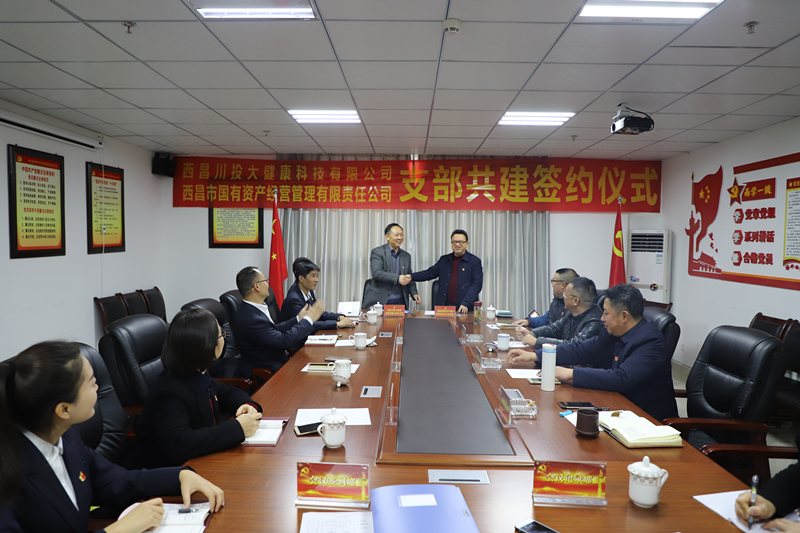 為深入學(xué)習(xí)貫徹黨的十九大精神,匯集智慧力量,凝聚黨建合力,助推川投西昌醫(yī)院項(xiàng)目建設(shè),打造新時代基層黨支部,12月27日上午,在西昌市國資公司黨員活動室,川投大健康公司與西昌市國資公司共同舉辦“支部結(jié)對共建”簽約儀式,集團(tuán)西昌項(xiàng)目籌備組副組長、大健康公司黨支部書記魯洪斌,西昌市國資公司董事長賈星,總經(jīng)理李紅丁,支部書記丁銳鋒等出席簽約儀式。