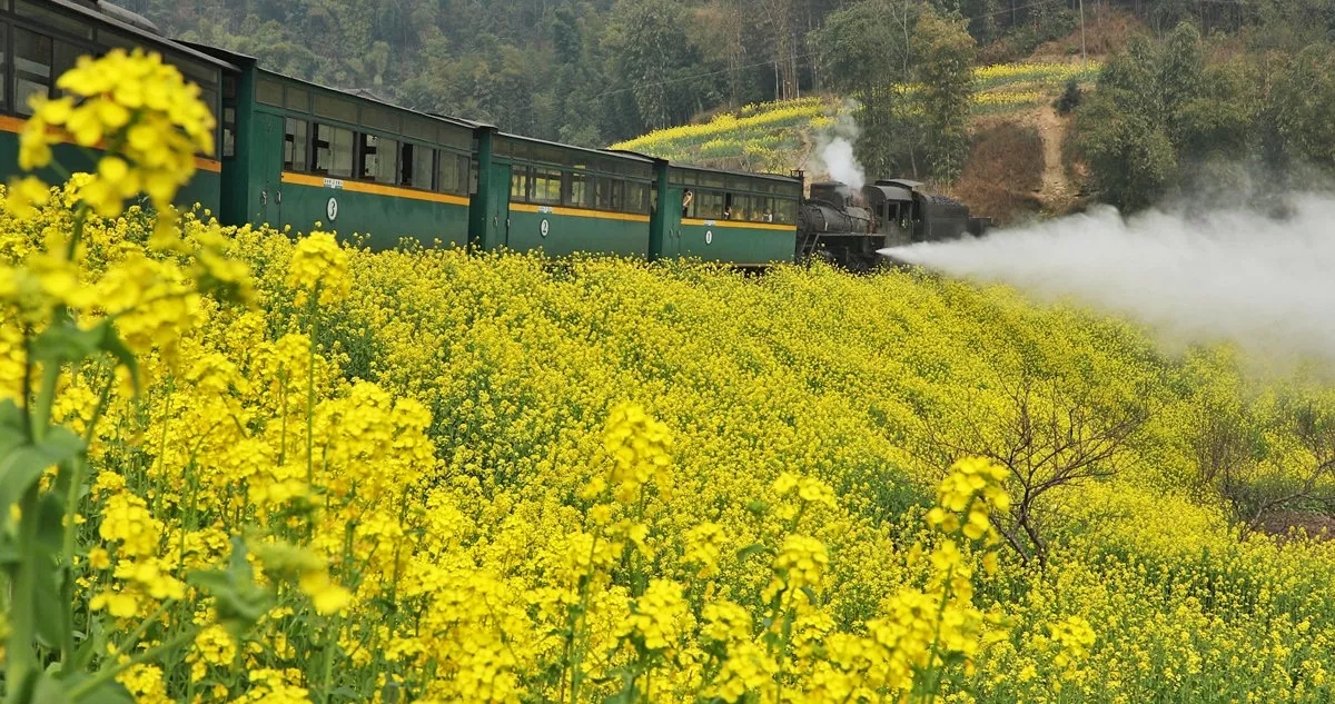春節(jié)剛過,嘉陽·桫欏湖旅游景區(qū)芭石鐵路沿線已是菜花朵朵,金燦燦一片。嘉陽小火車2018年花季之旅也如期起航。