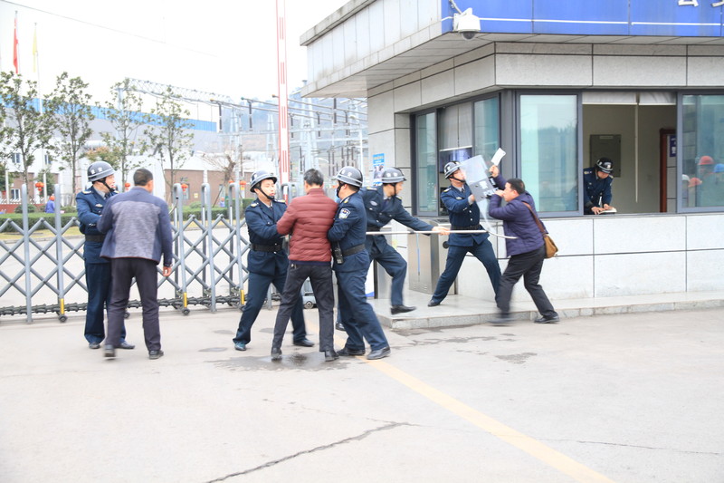 “趕快開門,是XX叫我來的?!薄巴荆埑鍪灸淖C件?!薄皼]有證件,少廢話,趕快讓我進(jìn)去!”3月5日上午,只見一名手持菜刀的“暴徒”試圖沖破門崗的阻攔,徑直奔向川投氣電公司廠大門……這一幕驚險的場景正是川投氣電公司舉辦的反恐處突實(shí)景演練。