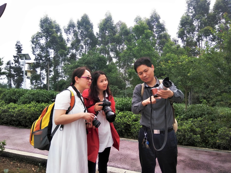 開班儀式后,寒松主任充分利用牛碾坪萬畝觀光茶園的優(yōu)美風(fēng)景進(jìn)行現(xiàn)場(chǎng)教學(xué),耐心仔細(xì)的為每位學(xué)員解答攝影技巧及攝影中的凝難問題,理論聯(lián)系實(shí)踐,受到學(xué)員的好評(píng)。