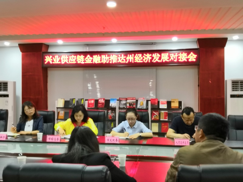 為推進(jìn)達(dá)州市電子商票的發(fā)展,推動川投氣電公司供應(yīng)鏈金融項(xiàng)目開展,2018年5月22日,在川投氣電公司協(xié)調(diào)下,達(dá)州市經(jīng)信委組織市金融辦、人行達(dá)州中支、市銀監(jiān)局、市投資公司、興業(yè)數(shù)字金融服務(wù)(上海)股份有限公司、成都撮合拍科技有限公司、四川川投信息產(chǎn)業(yè)有限責(zé)任公司等相關(guān)單位在達(dá)州市金融辦召開供應(yīng)鏈金融助推達(dá)州經(jīng)濟(jì)發(fā)展對接會。