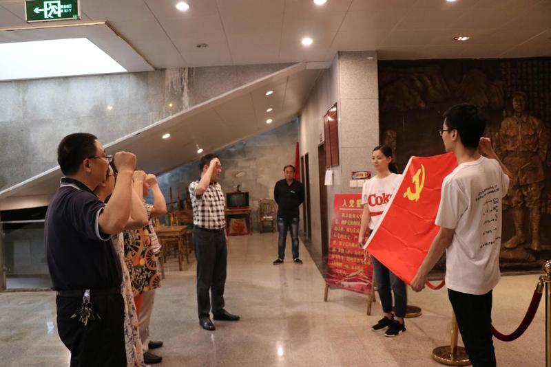 參觀過程中,公司副總經(jīng)理劉暢帶領(lǐng)各位黨員在紀(jì)念館浮雕前重溫了入黨誓詞,在“我志愿加入中國共產(chǎn)黨,擁護(hù)黨的綱領(lǐng),遵守黨的章程,履行黨員義務(wù),執(zhí)行黨的決定,.......”鏗鏘有力的宣誓中,各位黨員再一次接受了黨的誓言和偉大紅軍精神的洗禮。