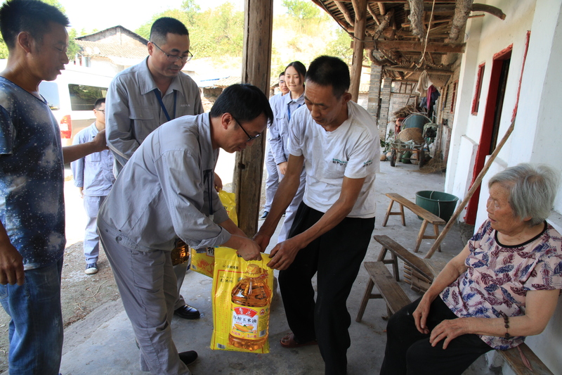 8月28日,氣電黨委副書記姚欣、總工程師蔡宏帶領公司部分黨員干部來到郭天珍家中進行慰問,送去大米和食用油。紅花村駐村第一書記張云向大家介紹了建檔立卡貧困戶郭天珍的家庭情況:老黨員郭天珍已八十多歲,由于腦中風造成不能行走,其子何剛香有智力缺陷,只能靠務農及養(yǎng)殖少量家禽為生,孫女何欣尚在讀技校,其在校每周生活費僅60元,家庭目前只有郭天珍一人享受低保,沒有固定經濟來源,生活非常困苦。