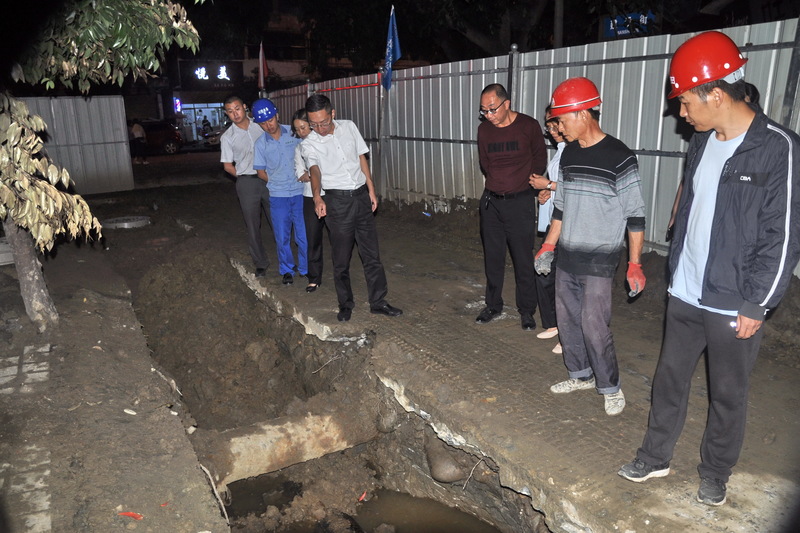 隨后,鄧總一行冒雨前往管網(wǎng)改擴(kuò)建二期工程施工現(xiàn)場檢查。在與監(jiān)理人員交談后,鄧總指出:施工人員要嚴(yán)格落實(shí)各項(xiàng)安全措施,確保施工安全和人員安全;要文明施工,特別是要做好老百姓的宣傳解釋工作;要以高起點(diǎn)、高標(biāo)準(zhǔn)、高質(zhì)量為要求,切實(shí)把二期工程做好、做扎實(shí)、做成亮點(diǎn)工程。