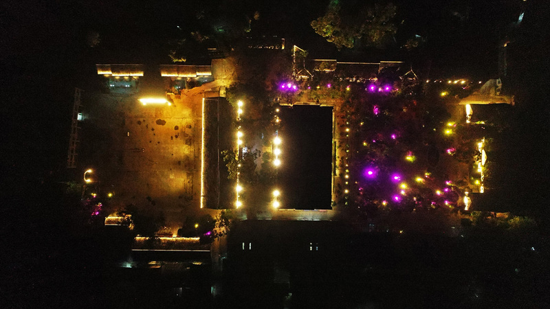 經(jīng)過前期優(yōu)質(zhì)高效的方案設(shè)計(jì)與安裝調(diào)試,第一期共計(jì)3000余套燈組各就各位。夜色漸濃,燈光亮起,毛澤東思想大舞臺(tái)、東方紅廣場、快活林茶園……屋檐上、樹枝上、石板路上……簡約的光影體現(xiàn)著最質(zhì)樸的年代感,投光的手法突顯了建筑本身的特色,明暗的對(duì)比強(qiáng)調(diào)著小鎮(zhèn)的真實(shí)質(zhì)感,低調(diào)的燈光襯托了小鎮(zhèn)的歲月靜好。獨(dú)具特色的景觀打造配以日趨完善的商業(yè)配套,工礦年代小鎮(zhèn)芭蕉溝給了游客們“留下來,住一夜”的最好的理由。