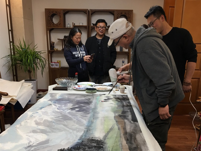 11月10日晚,書畫家們在田灣河公司電站營地舉行了以田灣河為主題的書畫筆會交流活動。書畫家們揮毫潑墨,根據(jù)兩天來在田灣河的所見、所想,按照自己的專業(yè)創(chuàng)作了相應的繪畫作品,并與公司書畫愛好進行了交流和專業(yè)指導。