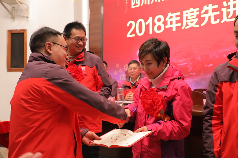 川投峨旅黨委書記、董事長杜勤作了題為《鼓足干勁爭上游 砥礪前行再出發(fā)》的重要講話。最后,川投峨旅總經(jīng)理張多和黨委書記、董事長杜勤分別代表經(jīng)營班子與代表黨總支及董事會(huì)向全體職工致以最誠摯的新春祝福,大會(huì)還對(duì)2018年公司先進(jìn)個(gè)人進(jìn)行了頒獎(jiǎng)。