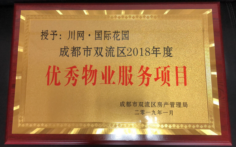 2019年1月15日,雙流區(qū)房管局召開(kāi)“2018年物業(yè)管理工作總結(jié)會(huì)暨年度表彰大會(huì)”,會(huì)議對(duì)2018年度物業(yè)服務(wù)暨城鄉(xiāng)環(huán)境綜合治理十佳物業(yè)服務(wù)企業(yè)、優(yōu)秀物業(yè)服務(wù)項(xiàng)目、優(yōu)秀物業(yè)服務(wù)項(xiàng)目經(jīng)理等評(píng)定情況進(jìn)行了通報(bào),佳友物業(yè)川網(wǎng)國(guó)際花園項(xiàng)目獲得“2018年度優(yōu)秀物業(yè)服務(wù)項(xiàng)目”、項(xiàng)目副經(jīng)理陳文利獲得“2018年度優(yōu)秀物業(yè)服務(wù)項(xiàng)目經(jīng)理”。報(bào)成都市房管局記加信用分10分以茲鼓勵(lì)。
