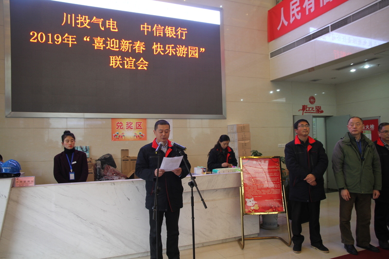為豐富員工的業(yè)余生活,增進(jìn)友誼,營造熱烈、喜慶、祥和的節(jié)日氣氛,1月30日,川投氣電和中信銀行達(dá)州分行在川投氣電公司聯(lián)合舉辦了“喜迎新春、快樂游園”聯(lián)誼會。游園活動開始前,川投氣電黨委書記、董事長楊超龍以及中信銀行達(dá)州分行黨委書記、行長吳新華致新春賀詞。