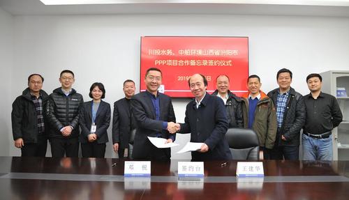 雙方隨后舉行了“汾陽(yáng)市汾河流域生態(tài)修復(fù)與保護(hù)工程PPP項(xiàng)目汾陽(yáng)市市政基礎(chǔ)設(shè)施建設(shè)工程PPP項(xiàng)目”合作備忘錄的簽約儀式。中船環(huán)境財(cái)務(wù)部長(zhǎng)李運(yùn)良、市場(chǎng)部副部長(zhǎng)吳冠群、財(cái)務(wù)部主管吳雪峰、質(zhì)量部主管李漢平,川投水務(wù)集團(tuán)總會(huì)計(jì)師祝瑗、董事會(huì)秘書嚴(yán)斯亮、川投船重總經(jīng)理馬銘偉等參加了會(huì)談。