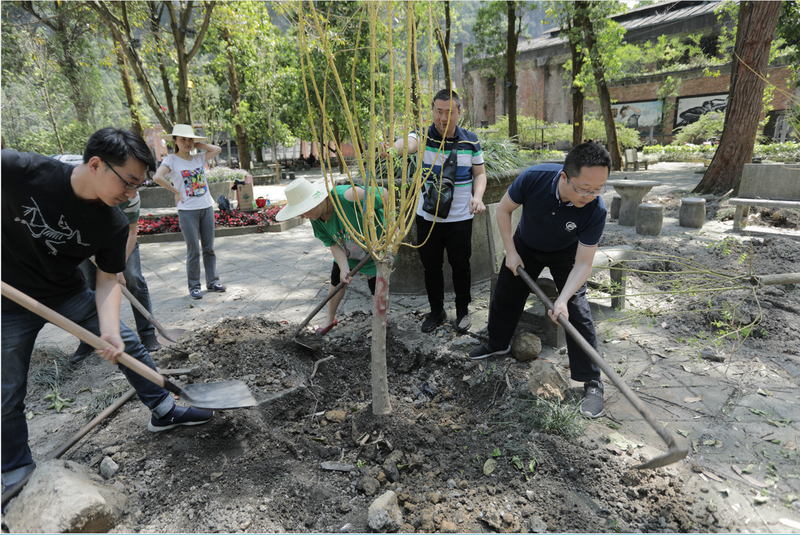 植樹造林,守護(hù)生態(tài)。芭蕉溝快活林,總經(jīng)理張多、副總經(jīng)理陳忠?guī)ьI(lǐng)川投峨旅黨員群眾共15人在技術(shù)員的指導(dǎo)下,刨坑、上苗、扶正、去保護(hù)網(wǎng)、培土……一派熱火朝天。在大家的齊心協(xié)力下,15株黃金槐全部栽種到位,也為景區(qū)再添生機(jī)。