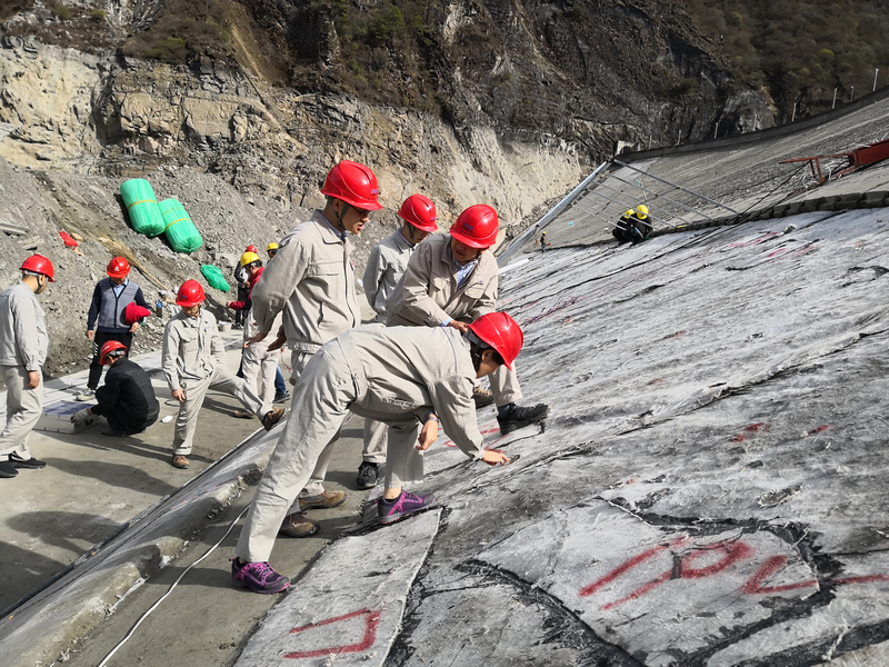 檢查組首先到仁宗海大壩,對正在實施的大壩滲漏治理工程進行深入了解、檢查,向現(xiàn)場的施工、監(jiān)理人員了解工程進度、存在的問題,并對有破損的土工膜進行查看。李紅要求,嚴格按照設(shè)計單位的方案進行工程的施工,確保通本次處理能將發(fā)現(xiàn)的滲漏缺陷進行徹底的處理,順利通過年底的大壩定檢。