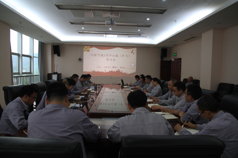 5月30日下午,川投氣電黨委中心組(擴大)學習會在辦公樓4樓會議室召開,黨委書記、董事長楊超龍主持會議,公司黨委委員、班子成員、中層干部、支部委員及黨員代表近20人參加學習會。
