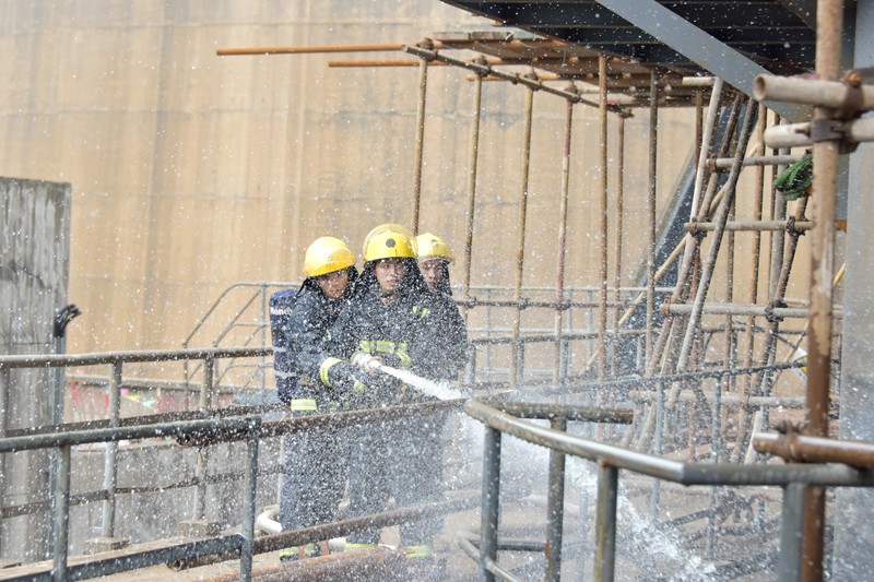 此次演練旨在貫徹落實川南發(fā)電《關(guān)于開展2019年“安全生產(chǎn)月”活動的通知》的要求,進(jìn)一步提高公司職工應(yīng)對發(fā)生著火事故的處置水平及救援能力。演練以#2機(jī)組新建的二級吸收塔玻璃鱗片防腐內(nèi)襯著火為場景。上午10時演練開始,各參演人員根據(jù)自己的職責(zé)緊張有序進(jìn)行演練。北京清新川南項目部完成了人員撤離、初期火災(zāi)的處置及報警;消防人員快速趕到火災(zāi)現(xiàn)場使用開關(guān)水槍滅火,兼職消防隊配合開展搶險;保衛(wèi)人員現(xiàn)場警戒和交通管制等各項演練依次展開,10時35分,演練順利結(jié)束。