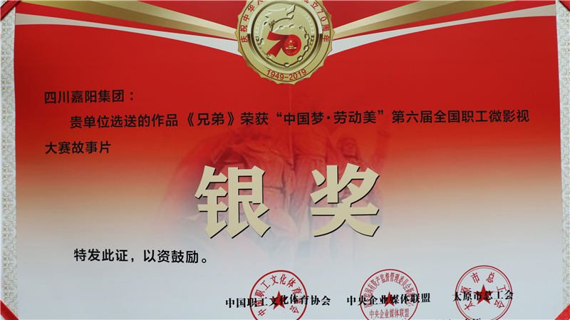 10月29日,“中國夢?勞動美”第六屆全國職工微影視大賽評選揭曉,嘉陽集團微電影《兄弟》榮獲故事類銀獎。
