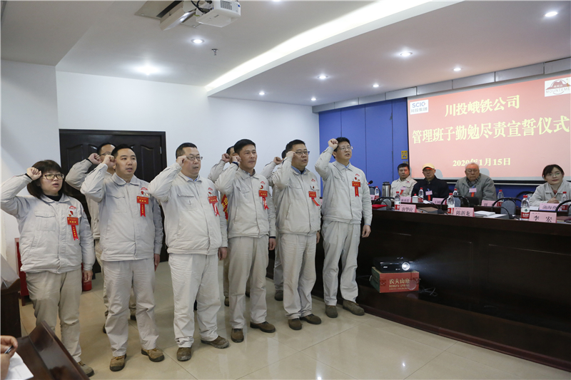 1月15日,在川投峨鐵公司五屆四次職工代表大會上,公司黨委書記、董事長、總經(jīng)理唐華應(yīng)率公司9名管理班子成員,面向參會的118名會議代表整齊列隊,舉起右手,莊嚴(yán)宣誓:忠于黨的領(lǐng)導(dǎo),忠于祖國,忠于峨鐵,認(rèn)真履行崗位工作職責(zé),模范遵守峨鐵規(guī)章制度和各項決議,自覺維護峨鐵利益和峨鐵形象,勤奮學(xué)習(xí)、恪盡職守、勤勉盡責(zé),團結(jié)協(xié)作、務(wù)實創(chuàng)新、誠實守信,清正廉潔、以上率下、合規(guī)管控,切實做到忠誠、干凈、擔(dān)當(dāng)。全心全意為實現(xiàn)公司戰(zhàn)略與生產(chǎn)經(jīng)營目標(biāo)服務(wù),為建設(shè)強大的川投峨鐵而努力奮斗!