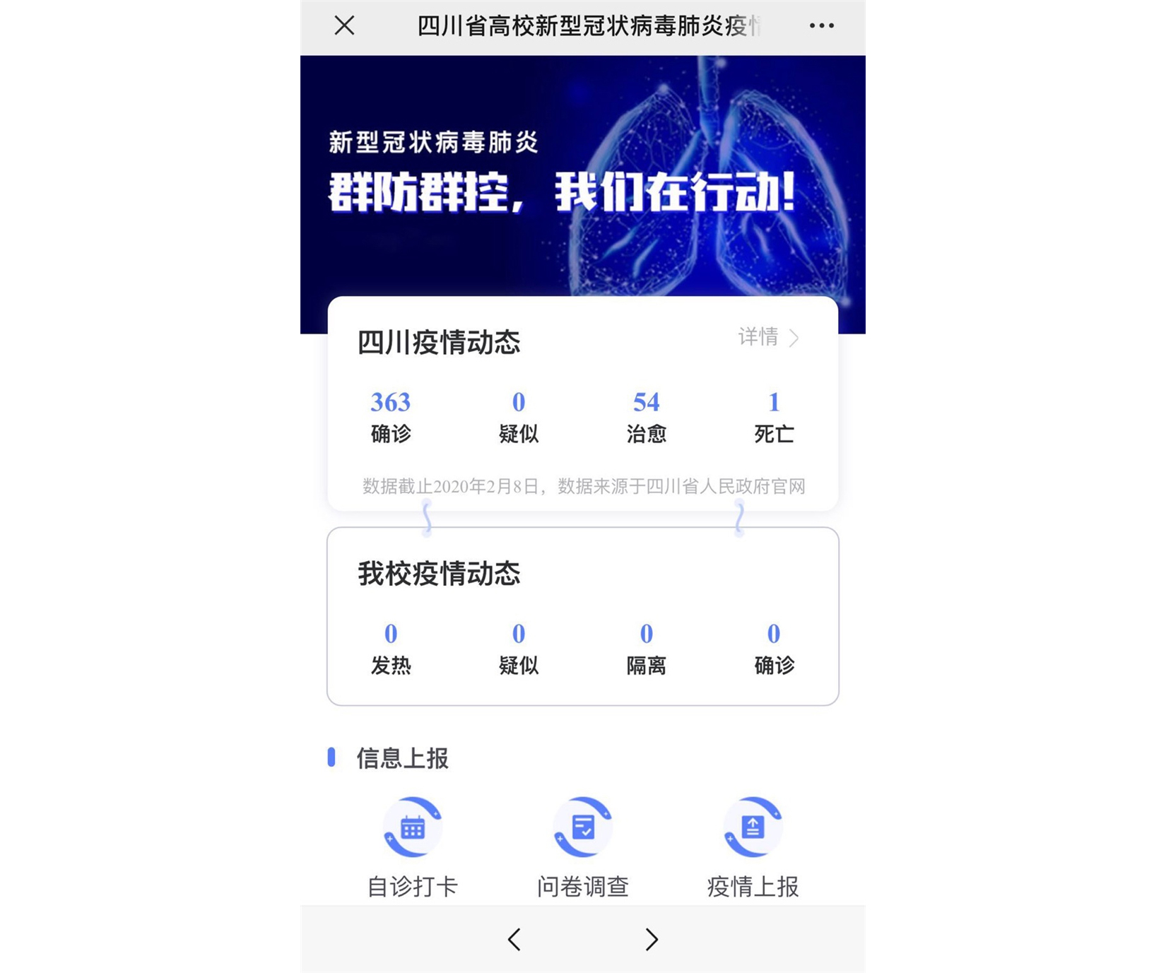 為防止疫情在校園蔓延,保護(hù)廣大師生生命安全,在省國資委、教育相關(guān)部門號(hào)召和川投集團(tuán)部署下,四川教育大數(shù)據(jù)聯(lián)盟副主任單位——川投信產(chǎn)集團(tuán)以大數(shù)據(jù)技術(shù)為支撐,緊急研發(fā)的“四川省高校新型冠狀病毒肺炎疫情填報(bào)系統(tǒng)”于2月8日正式上線,這也是四川教育大數(shù)據(jù)聯(lián)盟自2019年底成立以來的重大舉措。