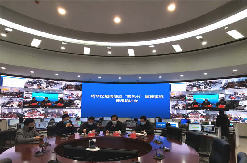 此外,為保障工作人員及時掌握系統(tǒng)使用方法、使用科技手段助力疫情防控,2月11日,成華區(qū)組織召開了“五色卡”管理系統(tǒng)上線培訓(xùn)會議,智勝集成公司技術(shù)人員通過遠程視頻會議,操作演示了“五色卡”管理系統(tǒng)PC端和移動端,并對各街道、社區(qū)工作人員提出的問題進行解答。