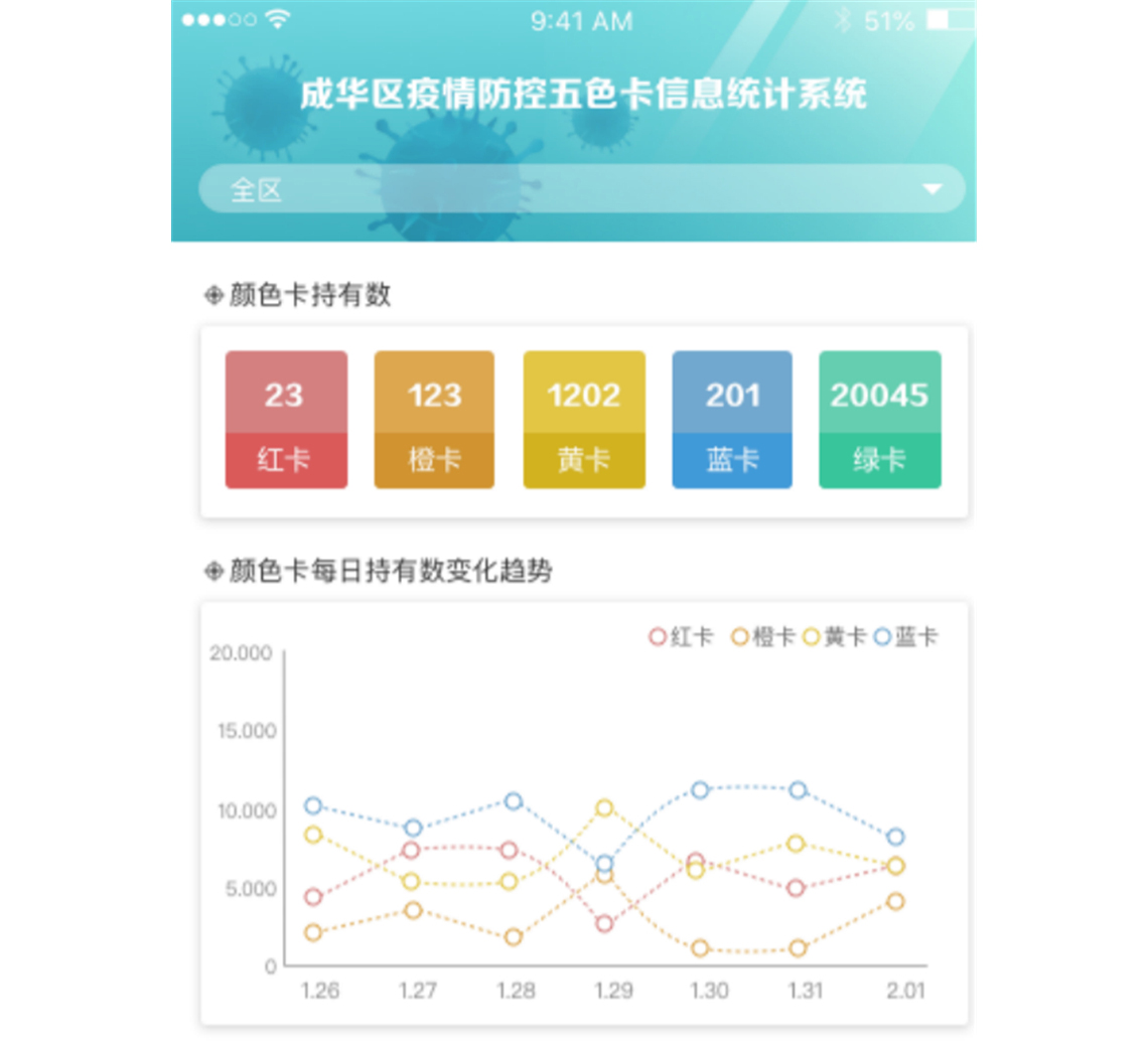 而支撐這“五色卡”的,則是川投信產(chǎn)所屬智勝集成公司利用互聯(lián)網(wǎng)+、大數(shù)據(jù)等信息技術(shù),研發(fā)上線的“成華區(qū)疫情防控五色卡信息管理系統(tǒng)”。截至目前,該系統(tǒng)已在成華區(qū)全區(qū)11個街道、110個社區(qū)、全區(qū)130多萬居民中推廣使用。
