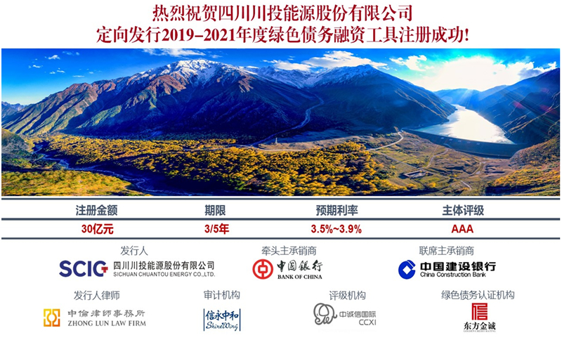 近日,川投能源迎來“定向發(fā)行2019-2021年度綠色債務(wù)融資工具”注冊成功的好消息。本次私募債注冊金額30億元,公司可在注冊額度內(nèi)分批次或一次性發(fā)行,募集資金將定向用于公司投資的綠色項(xiàng)目建設(shè),期限3/5年。此次為川投能源首次成功注冊私募債綠色債務(wù)融資工具,牽頭主承銷商為中國銀行。私募債發(fā)行利率將根據(jù)發(fā)行時的市場情況確定,預(yù)期在3.5%-3.9%之間(3-5年期限),遠(yuǎn)低于同期限銀行貸款基準(zhǔn)利率。