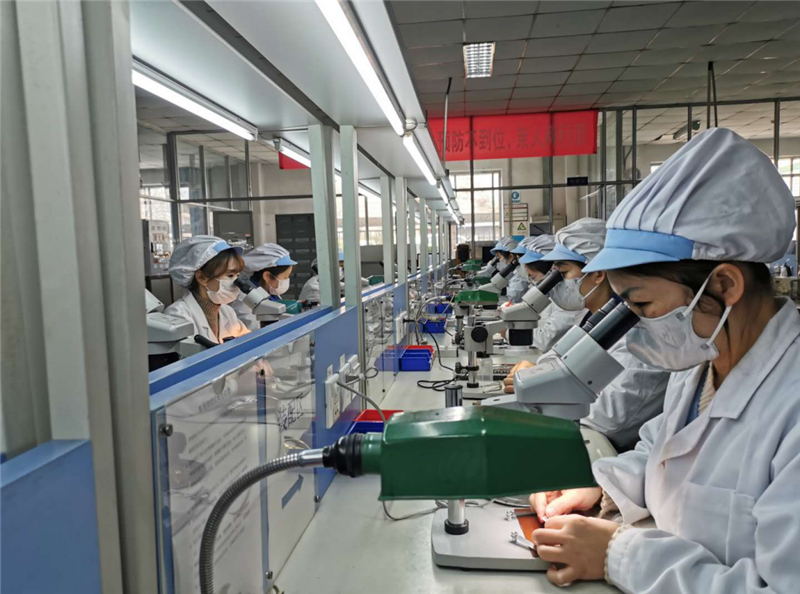 203車間負責生產(chǎn)制造電位器門類產(chǎn)品,有女職工112人,占車間總人數(shù)的90%,是名副其實的“巾幗團隊”。該車間曾多次獲成都市“工人先鋒號”、成都市技師工作室、優(yōu)秀班組等榮譽,2019年交出了產(chǎn)值破億元的優(yōu)秀成績單,是宏明電子增產(chǎn)增效、技術創(chuàng)新的一面旗幟。