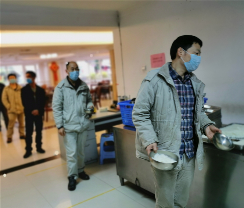 在營(yíng)地餐廳,馬軍按防疫要求,為避免就餐時(shí)的交叉感染風(fēng)險(xiǎn),對(duì)固定桌椅擺放位置進(jìn)行了調(diào)整,遠(yuǎn)距離就坐就餐,取餐時(shí),畫出一米的安全線,提示取餐食人員佩戴口罩、保持一定距離。細(xì)心、用心的措施,體現(xiàn)了景達(dá)員工最周到的服務(wù)。