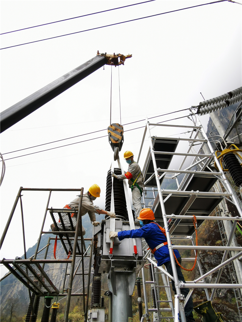 在互感器吊裝過程中,起重機(jī)安裝在1#主變和2#主變之間,互感器安裝位置在距地面約12米高度的位置,起重機(jī)司機(jī)和地面指揮人員在豪厘之間通力配合,精準(zhǔn)操作。實(shí)驗(yàn)過程中,檢修人員認(rèn)真核對(duì)圖紙,嚴(yán)格按照實(shí)驗(yàn)規(guī)范進(jìn)行分部施工,專職安全員全程監(jiān)督,嚴(yán)防施工人員走錯(cuò)帶電間隔。