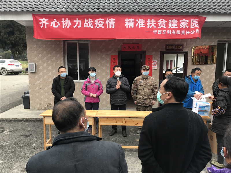 新冠肺炎疫情發(fā)生以來(lái),華西牙科認(rèn)真履行國(guó)企政治責(zé)任,堅(jiān)決貫徹落實(shí)省委省政府和集團(tuán)公司決策部署,密切關(guān)注定點(diǎn)幫扶對(duì)象樂(lè)山市金口河區(qū)永勝鄉(xiāng)大坪村的疫情防控工作情況,心系大坪村父老鄉(xiāng)親們的生產(chǎn)生活。2020年3月17日,華西牙科總經(jīng)理關(guān)志強(qiáng)、黨委副書(shū)記、紀(jì)委書(shū)記金晶、辦公室主任朱倫倫、四川口院頜面外科護(hù)士長(zhǎng)吳玉紅等一行7人,來(lái)到金口河區(qū)大坪村開(kāi)展對(duì)口幫扶活動(dòng)。金口河區(qū)武裝部政委原春林、永勝鄉(xiāng)鄉(xiāng)長(zhǎng)梁德祥、永勝鄉(xiāng)人大主席王立春、大坪村支部書(shū)記張豐奎、副書(shū)記陳永林及大坪村80余名村民參加活動(dòng)。