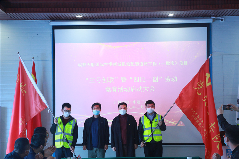 為貫徹落實川投集團關于加強生產(chǎn)經(jīng)營工作打贏經(jīng)濟保衛(wèi)戰(zhàn)的指示精神,圓滿完成2020年產(chǎn)值目標,川投空港與各股東單位、施工單位共同籌備策劃了空港新城項目2020年勞動競賽活動,力求保持大干快上的生產(chǎn)節(jié)奏,有力推進項目施工任務。3月31日,勞動競賽啟動大會順利召開,標志著空港新城項目大干快上的序幕正式拉開,川投空港、高投建設、中建三局等公司領導參加。