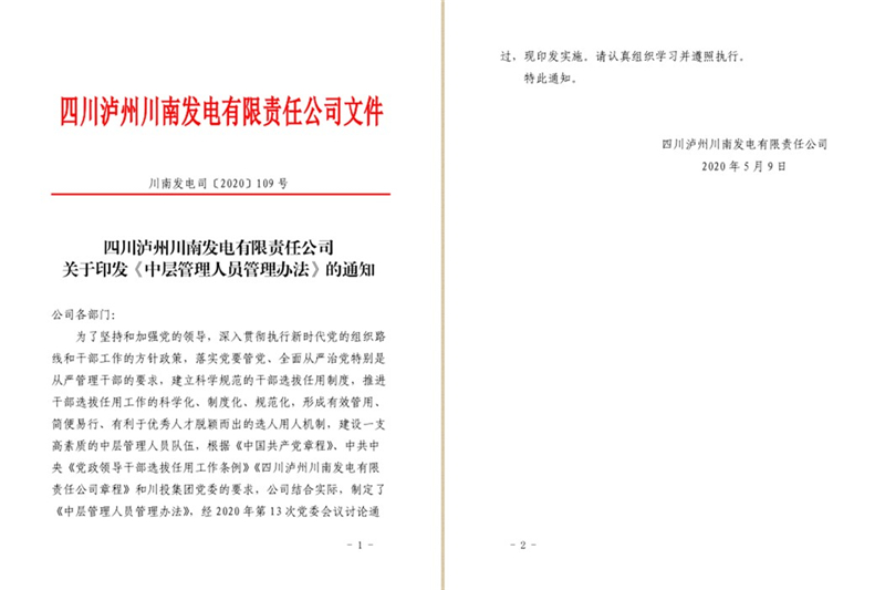 為嚴(yán)格中層干部選拔任用管理工作,公司從資格條件、選任方式和程序、教育管理、退出管理、回避和交流、紀(jì)律與監(jiān)督等方面明確了中層管理人員選拔任用的基本原則、基本條件和選拔任用程序,細(xì)化了中層管理人員管理的主要內(nèi)容,嚴(yán)明了選拔任用工作的紀(jì)律規(guī)定。為強(qiáng)化公司中層管理人員管理工作,建立對黨忠誠、勤政務(wù)實(shí)、勇于創(chuàng)新、清正廉潔的中層管理人員隊(duì)伍,推動公司生產(chǎn)經(jīng)營再上新臺階打下了堅(jiān)實(shí)基礎(chǔ)。