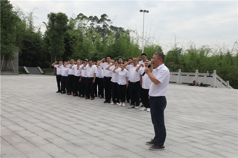 1949年12月解放軍在進軍成都途中,在井研縣竹園鋪遭到國民黨軍隊的頑抗阻擊,是成都戰(zhàn)役中最慘烈的攻堅戰(zhàn),81名指戰(zhàn)員長眠于此。竹園烈士陵園雕像廣場莊嚴肅穆,大家邁著沉重的步伐,緩緩來到竹園戰(zhàn)斗勝利紀念碑前,在莊嚴的國歌聲中,全體黨員代表肅立默哀,莊重地舉起右手,重溫入黨誓詞,牢記初心和使命。隨后,在兩位支部書記的帶領(lǐng)下向紀念碑敬獻花圈和鮮花,表達對先烈們的無限敬意和追思。