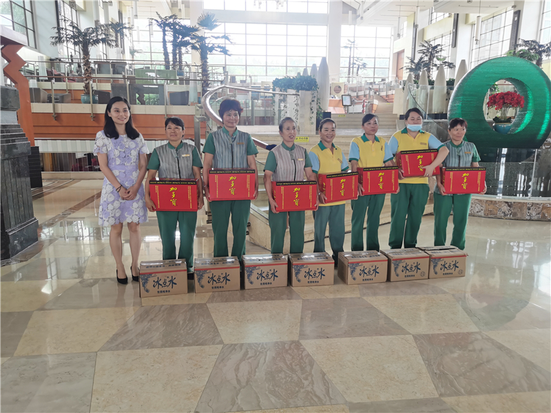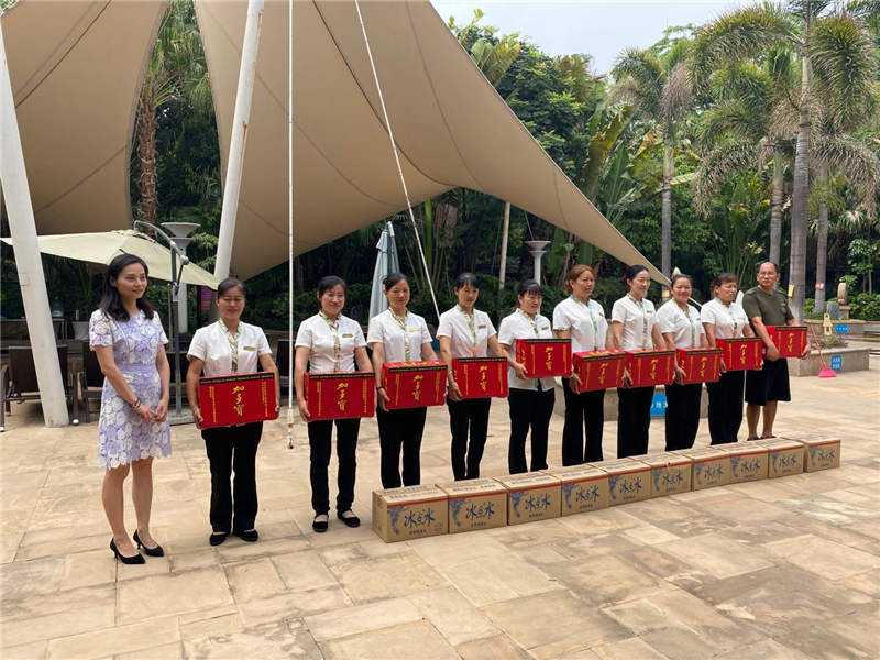 朱莉先后來到酒店綜合區(qū)、園林區(qū)與溫泉區(qū)為大家送去了防暑降溫用品。在慰問過程中,朱莉董事長對員工在烈日下仍堅守崗位、認(rèn)真工作的精神給予肯定和表揚(yáng),同時叮囑員工們一定要注意防暑降溫,備足藥品,加強(qiáng)自身安全意識,注意高溫天氣勞動保護(hù),并希望大家以飽滿的狀態(tài)努力工作,以奮進(jìn)的初心再接再厲。她表示,高溫氣候期間,酒店還需強(qiáng)化對顧客的防暑降溫服務(wù),完善防暑預(yù)案,做到體貼入微、深入人心。