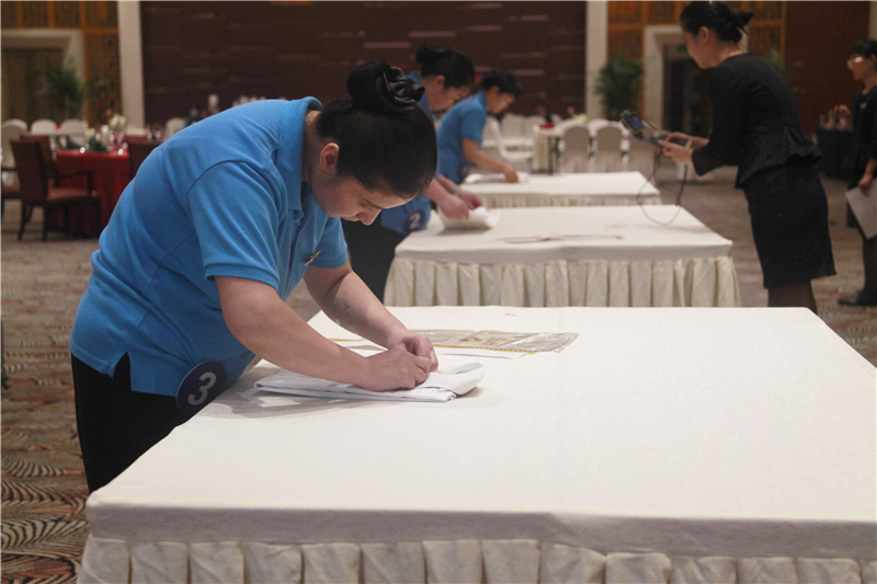本次大賽共設(shè)置了消防技能、中式鋪床、客衣折疊、收銀點(diǎn)鈔、前臺業(yè)務(wù)實(shí)操、英語技能、中餐擺臺、西餐擺臺、救生員技能、網(wǎng)球教學(xué)技能等10單項(xiàng)比賽以及職業(yè)形象展示、房地產(chǎn)銷售展示、廚藝展示等展示環(huán)節(jié),共計(jì)102人參加,有10名參賽選手獲得了員工崗位技能標(biāo)兵稱號。