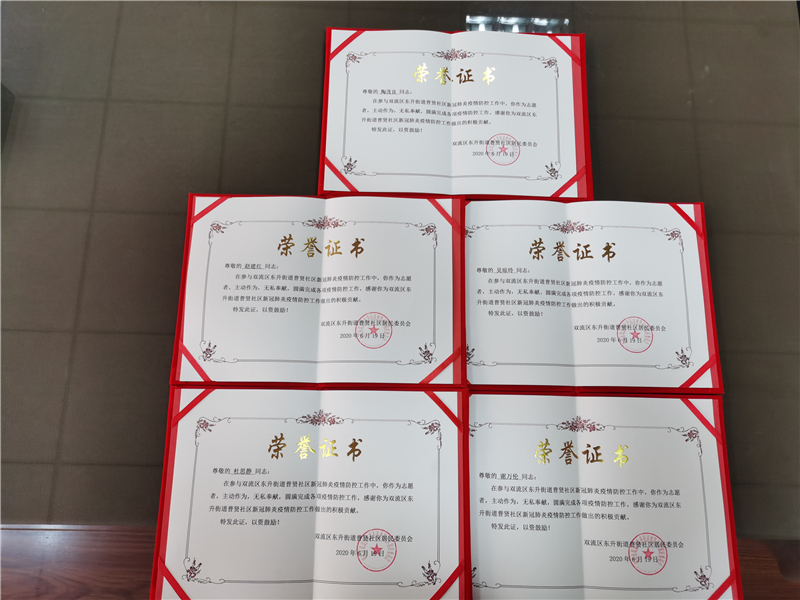 疫情防控期間,社區(qū)專門派駐了工作人員駐小區(qū)進行防控指導(dǎo),通過東升街辦和駐項目工作人員的考察舉薦和實際工作表現(xiàn),川網(wǎng)國際花園物業(yè)服務(wù)中心5名員工獲得了表彰。近日,普賢社區(qū)紀(jì)委書記和工會主席專門到項目進行了通報,并為表現(xiàn)突出的同志頒發(fā)了榮譽證書,激勵大家繼續(xù)為屬地做好疫情防控工作貢獻自己的一份力量。項目總經(jīng)理陶茂良攜管理人員進行了接待和工作匯報,并對屬地主管部門的肯定和指導(dǎo)表示感謝,表示將繼續(xù)配合屬地主管部門和社區(qū)做好各項疫情防控工作。