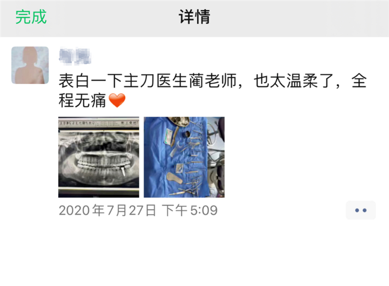 患者在手術(shù)完成后,點贊主診醫(yī)生!表示在全程無痛中進(jìn)行種植手術(shù),感到前所未有的放心。該患者將在3個月恢復(fù)期后,到院進(jìn)行佩戴牙冠,最終完成種植牙的診療。