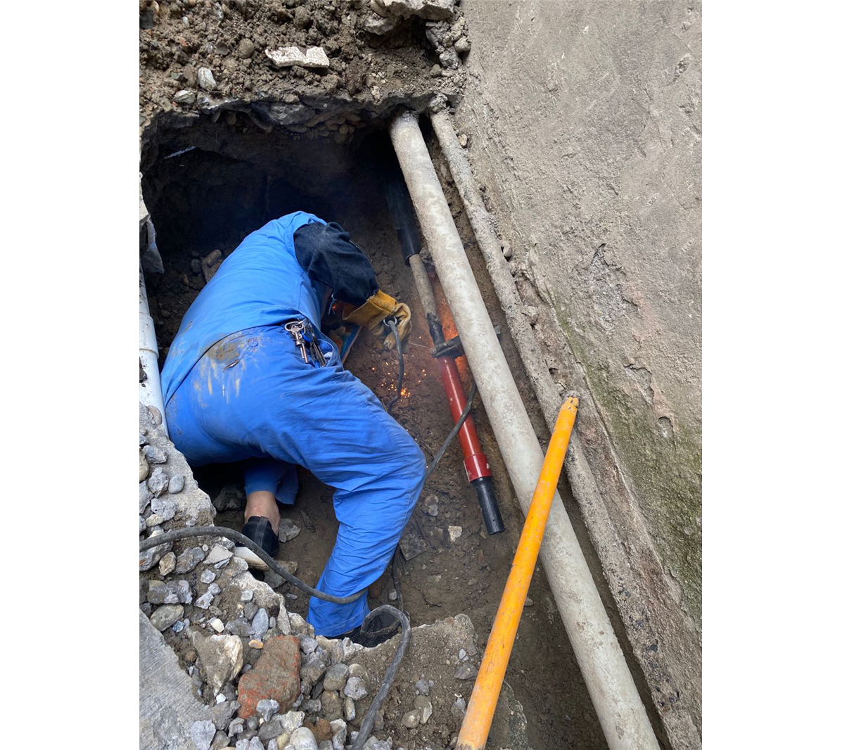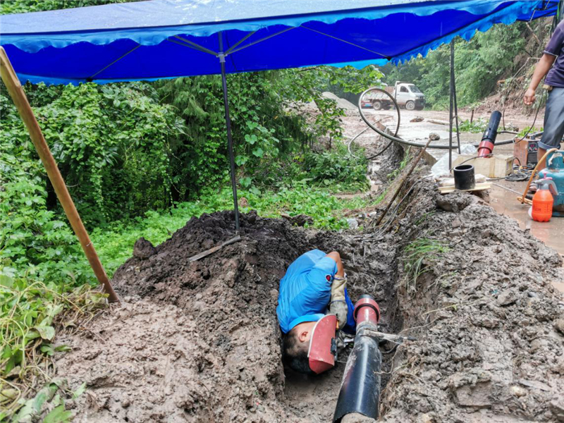 金家小埡村由于強(qiáng)降雨導(dǎo)致山體滑波將燃?xì)夤艿罁p壞,接到險情后陳輝同志迅速帶領(lǐng)相關(guān)人員前往小埡村,由于鄉(xiāng)鎮(zhèn)道路窄,路又滑,車子不能開到現(xiàn)場,搶險隊員只有抬著沉重的搶險材料和設(shè)備,步行一公里前往現(xiàn)場,雨天路滑,又是泥巴路,可謂是舉步維艱,到達(dá)現(xiàn)場,搶險隊員立即投入到工作中清理塌方處泥土,尋找被砸管道接頭,衣服分不清是汗水還是雨水,整個過程沒有人叫累喊苦,經(jīng)過兩個多小時緊張工作,順利排除了險情,保證了沿線1000多戶天然氣用戶的正常用氣。