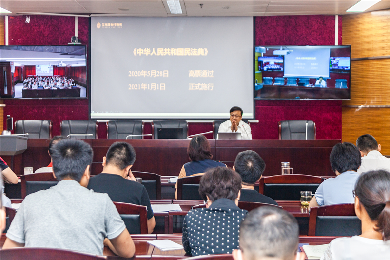 為全面貫徹省屬企業(yè)“七五”普法總結(jié)驗(yàn)收工作,全面推進(jìn)田灣河公司法制文化建設(shè),讓民法典走到員工身邊,走進(jìn)員工心里,弘揚(yáng)社會(huì)主義法治精神。9月4日,田灣河公司以視頻方式開展了民法典專題培訓(xùn)會(huì)。田灣河公司黨委書記、董事長李紅率領(lǐng)導(dǎo)班子參加,會(huì)議特邀發(fā)現(xiàn)律師事務(wù)所高級(jí)合伙人周永勇律師對(duì)《民法典》進(jìn)行專題培訓(xùn)講解,兩地三會(huì)場共80余人參加培訓(xùn)。