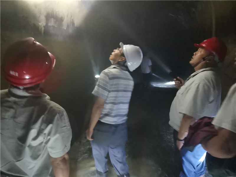 徐孝剛一行先是深入隧洞,仔細(xì)查勘洞內(nèi)受損情況,了解隧洞修建歷史及災(zāi)后檢查中發(fā)現(xiàn)的隱患,聽(tīng)取施工方關(guān)于應(yīng)急搶險(xiǎn)過(guò)程中存在困難和問(wèn)題;隨后聽(tīng)取了設(shè)計(jì)院、施工方共同作出的隧洞搶險(xiǎn)方案,并與相關(guān)人員進(jìn)行技術(shù)研討。