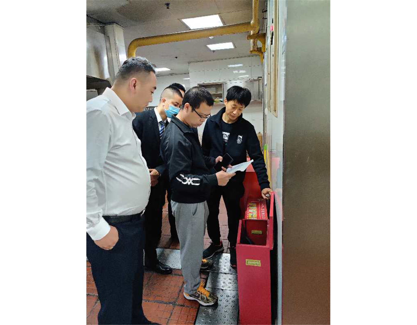 韋慶一行深入酒店廚房、消防控制室和大型活動(dòng)舉辦現(xiàn)場(chǎng),實(shí)地查看了相關(guān)點(diǎn)位消防設(shè)施器材以及重點(diǎn)部位,了解了公司值班備勤等工作情況。