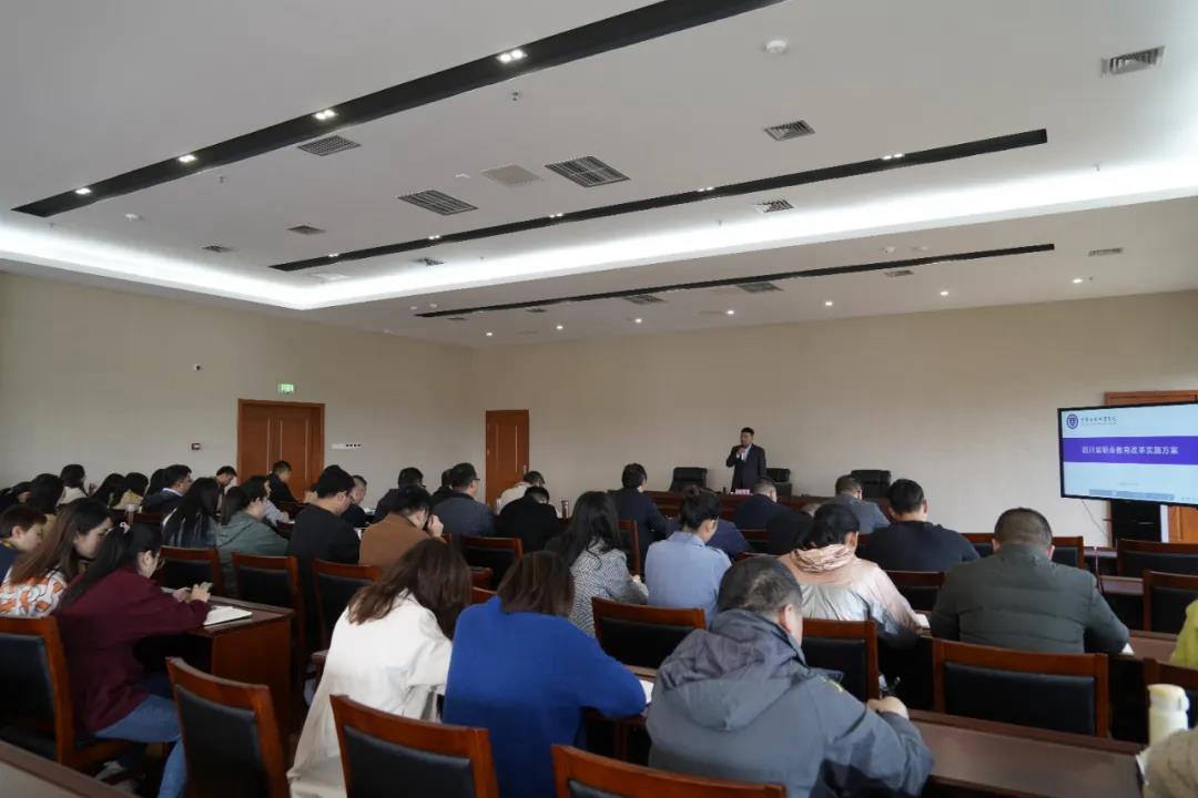 會上,張中偉對《方案》出臺背景、總體要求、重點任務(wù)、組織保障四大方面結(jié)合學(xué)院實際進(jìn)行了領(lǐng)學(xué)、解讀。張中偉強(qiáng)調(diào),《方案》是對四川省職業(yè)教育改革和發(fā)展的全面規(guī)劃和引領(lǐng),是事關(guān)四川省職業(yè)教育發(fā)展的大事,直接關(guān)系著學(xué)院的建設(shè)發(fā)展,希望全體教職工用發(fā)展的眼光、創(chuàng)新的思維對標(biāo)對表,不斷推進(jìn)學(xué)院建設(shè),提高教育教學(xué)水平和人才培養(yǎng)質(zhì)量。