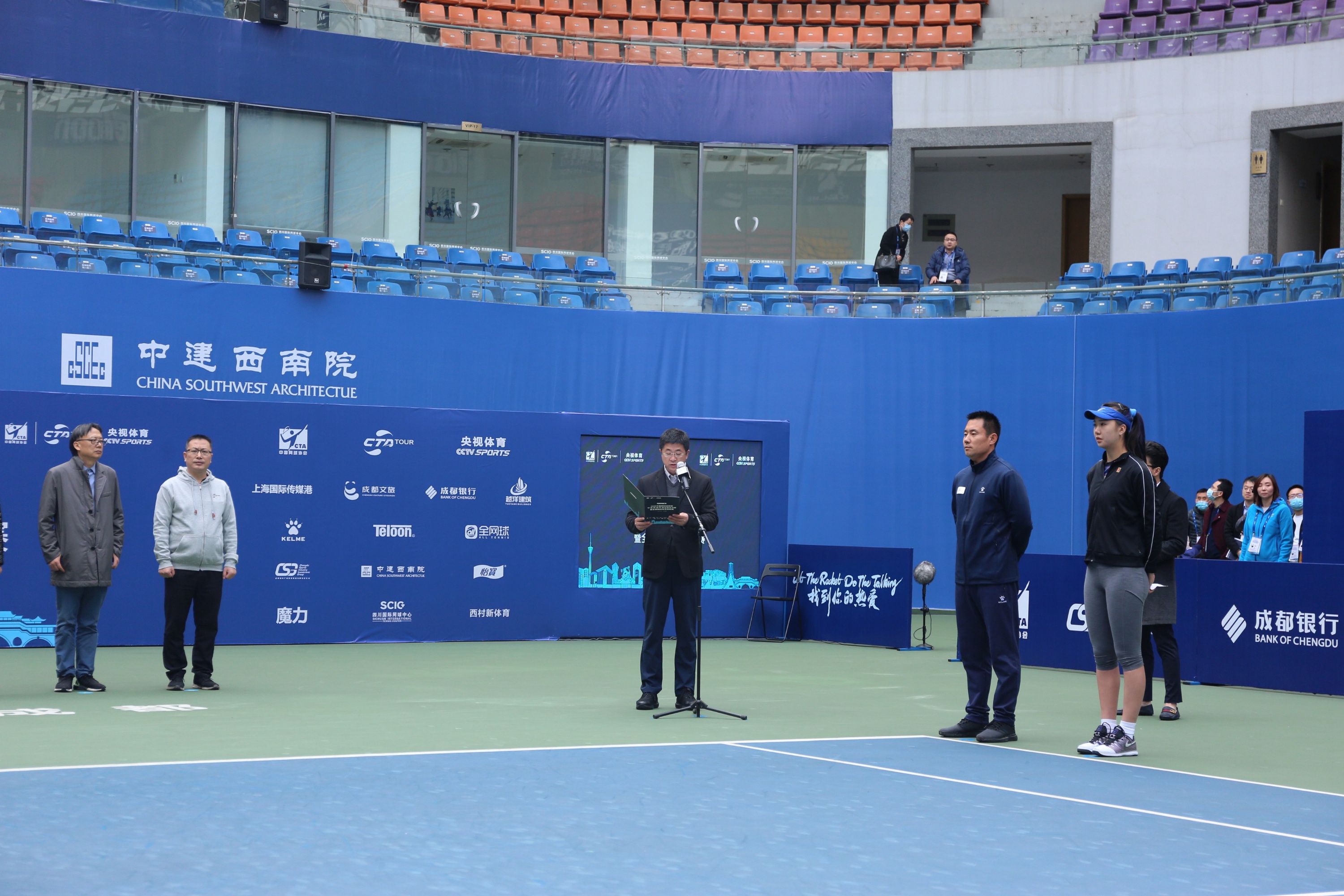 11月23日,2020中國(guó)網(wǎng)球巡回賽中建西南院職業(yè)級(jí)總決賽暨全國(guó)網(wǎng)球單項(xiàng)錦標(biāo)賽在川投國(guó)網(wǎng)公司開幕。國(guó)家體育總局網(wǎng)球運(yùn)動(dòng)管理中心競(jìng)賽部主任萬(wàn)建斌,四川省體育局副局長(zhǎng)陳興東,成都市人民政府副秘書長(zhǎng)林旭,川投國(guó)網(wǎng)公司黨委書記、執(zhí)行董事王旭濤等出席開幕式。