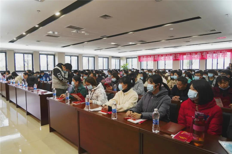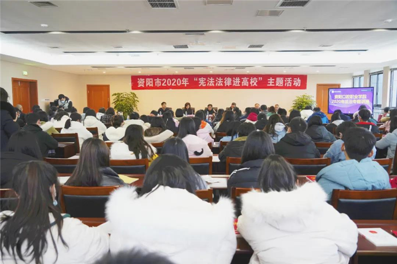 12月1日,資陽市司法局、高新司法分局組織普法宣講團(tuán)在資陽口腔職業(yè)學(xué)院開展全市2020年“憲法法律進(jìn)高?!敝黝}活動。資陽市人大常委會監(jiān)察和司法委員會主任委員劉斌,高新區(qū)總工會副主席黃維新,高新區(qū)司法分局局長余曉東,資陽口腔職業(yè)學(xué)院副院長夏余建出席互動。資陽市司法局副局長王蘭英主持活動。學(xué)院師生代表參加活動。