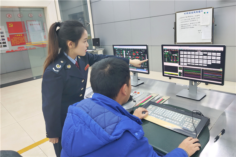會后,張洪陪同賈文川一行到公司集控室,實地了解公司機組生產(chǎn)流程并查看污染物排放實時監(jiān)控系統(tǒng)數(shù)據(jù)。