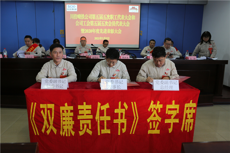 3月4日下午和3月5日上午,各分工會(代表團)分別召開分工會職工代表、會員代表會議,審議職代會、會員代表大會報告并分別提出了審議意見。3月5日15:00,在職代會、會員代表大會復會上,公司黨委副書記、總經(jīng)理陳新龍宣布了各分工會對大會議案審議結(jié)果的報告;隨后,公司舉行了雙廉責任書、安全責任書、各類集體合同的簽字儀式,大會還對獲得2020年度先進集體和先進個人進行表彰。
