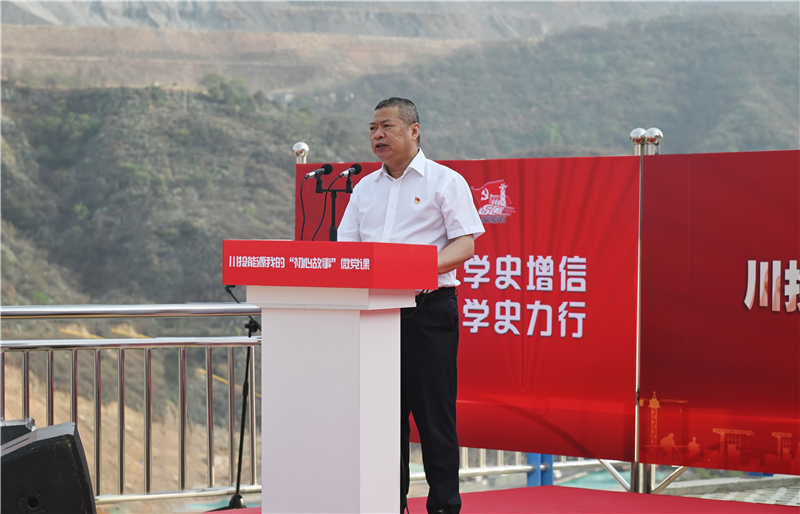 5月19日上午,川投能源“我的初心故事”微黨課巡講團(tuán)首站來(lái)到銀江水電站工地現(xiàn)場(chǎng),為攀水電及各參建單位黨員代表100余人帶來(lái)了一場(chǎng)紅色勵(lì)志的“視聽(tīng)盛宴”。公司黨委書記、副董事長(zhǎng)、總經(jīng)理?xiàng)詈?,黨委副書記、工會(huì)主席楊超龍,副總經(jīng)理、攀水電公司黨總支書記、董事長(zhǎng)徐孝剛及各參建單位負(fù)責(zé)人參加現(xiàn)場(chǎng)巡講。