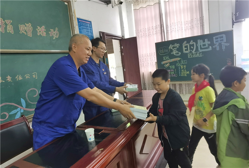 隨后,經(jīng)營管理黨支部將準(zhǔn)備好的作業(yè)本、拼音本、鉛筆、套尺、跳繩和經(jīng)典圖書等學(xué)習(xí)用品用具發(fā)給了學(xué)生代表。